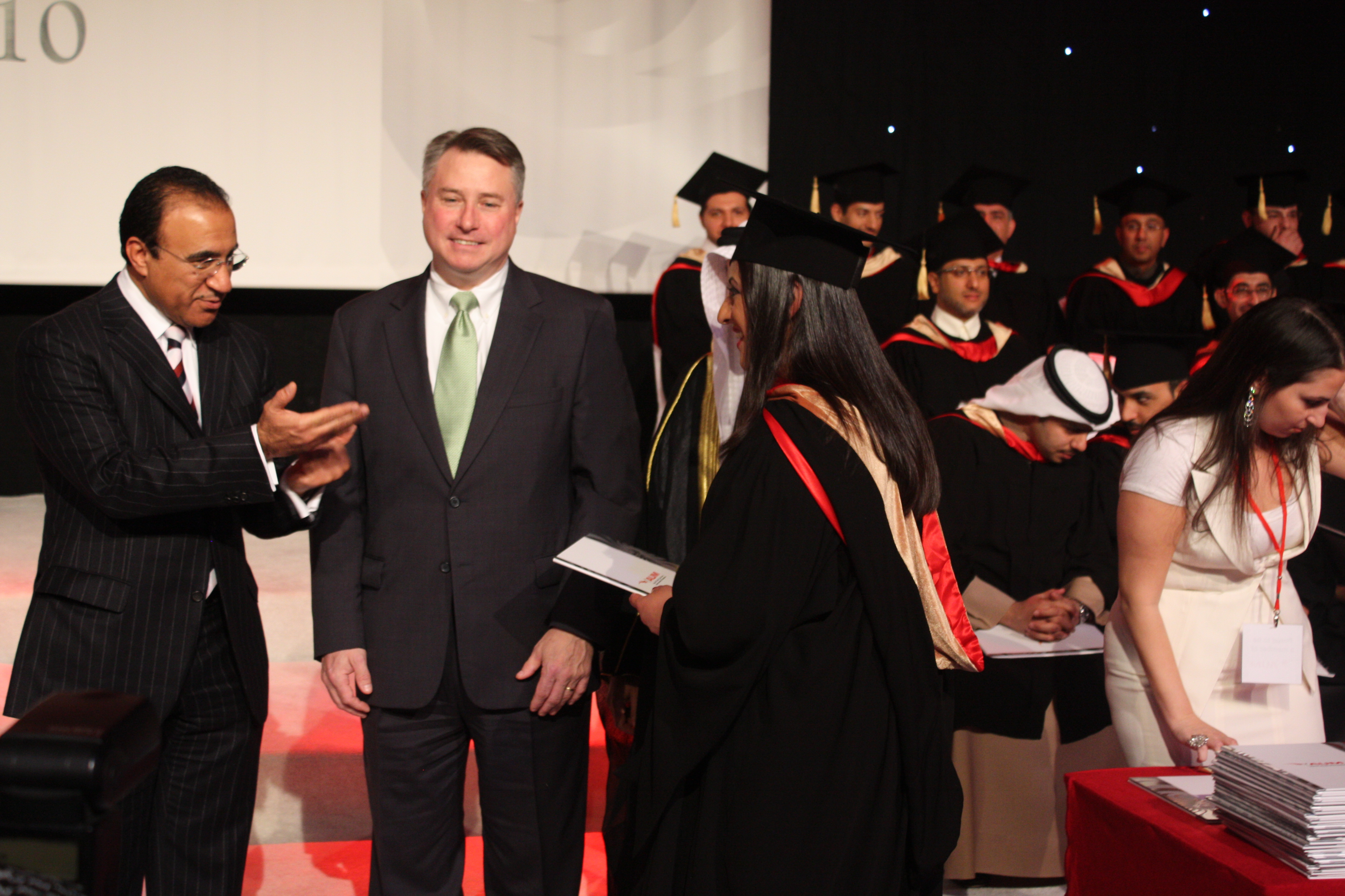 and finally I received my Certificate.. in this picture from the left Mr. Chuck Johnson “the Director of Executive Education programs ” And on his right Mr. Fahad Al-Othman “Board of Directors of Human Soft Holding and Chairman of the Board of Trustees of the AUM”