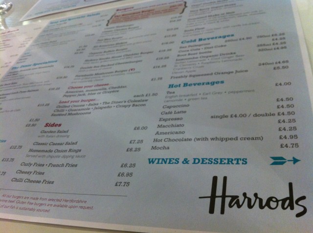 This entry was posted in diary, Food and drink, Travel and tagged Harrods, london, The Diner Restaurant. Bookmark the permalink.