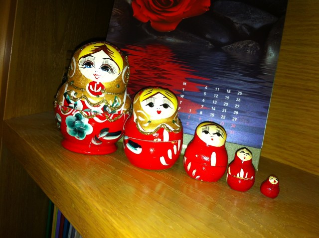 I’ve got those Nesting Doll while I was in Muscat. I always wanted to have it, until I saw it there in an antique shop. It looks lovely..Specially when you put them back all together and have the bigger one carrying them all.