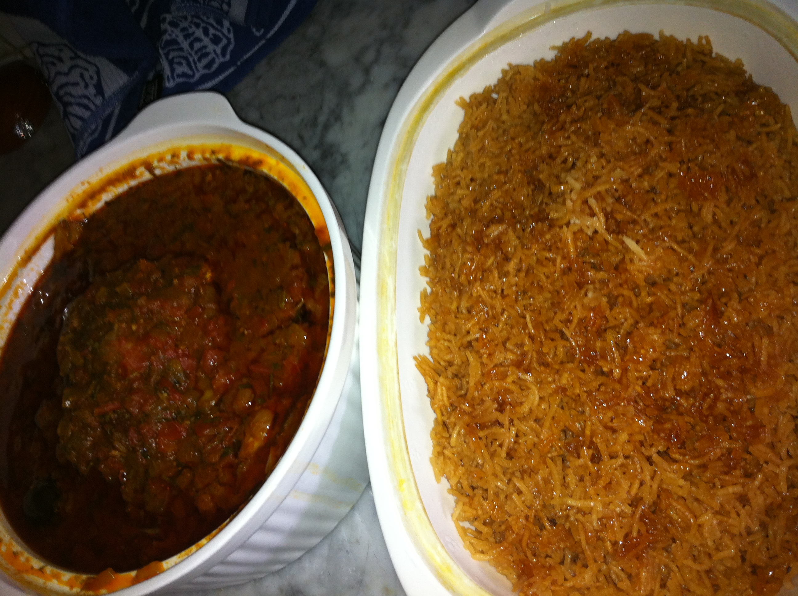 In Kuwait we have a traditional dish called “Mu7amar” it’s basically I sweetened rice and salty fish stew. What is strange that I’ve never ever tried this dish in my whole life. Although i am into seafood and I wouldn’t mind to give it a try. At home we don’t do Mu7amar, and I wanted to make sure to try it from someone who has the talent and grasp the way it should be done perfectly. I wanted to have it the way it cooked at the olden days in Kuwait. So I asked my mom to check with her friends and family for someone who can do it the right way. and here it comes, at first i couldn’t accept the fact that the rice was too sweetened and then after mixing it with the salty fish stew it was great. Not that I am gonna have it again, but at least I know now what if Mu7amar š and I would do a slight modification to the dish by adding salt to the rice instead of the sugar and call it modified Mu7amar!