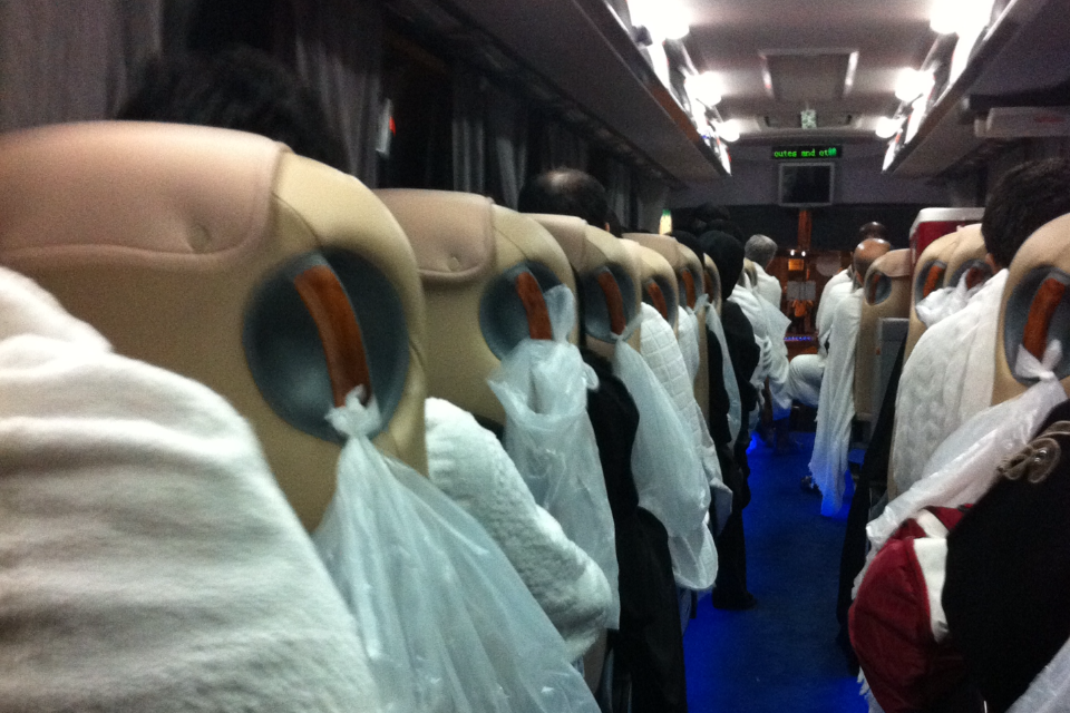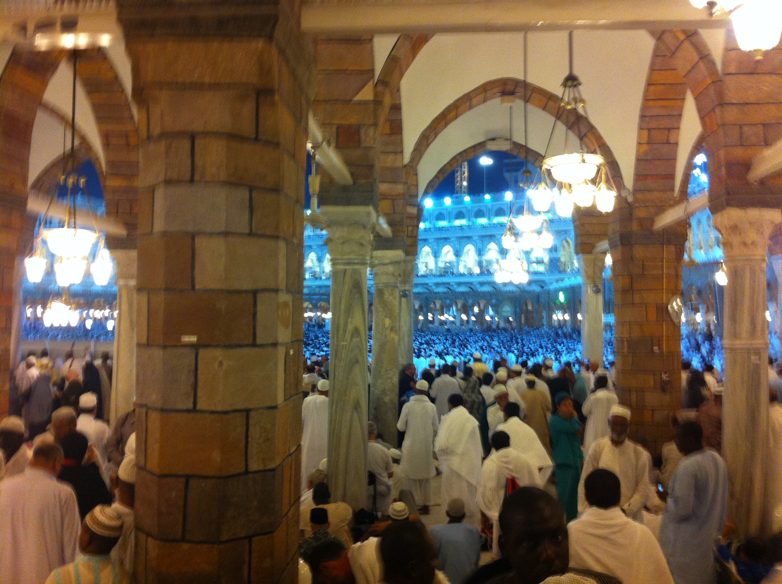 At 3:30 They took us in a bus from the hotel heading to Makkah were the Kabaa Almusharafa is located to do our Omra. We were not able to reach the haraam due to Saudi recent law that enforce all the buses to stop in a big yard and from there we have to take a local bus. The local bus was really crowded! Finally we’ve managed to catch up one of those local buses.