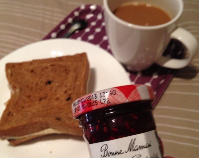 I woke up late this afternoon.. Partially hungry! I thought of having cheese and raspberry jam <– My Fav 🙂 I am watching Prometheus on OSN On Demand