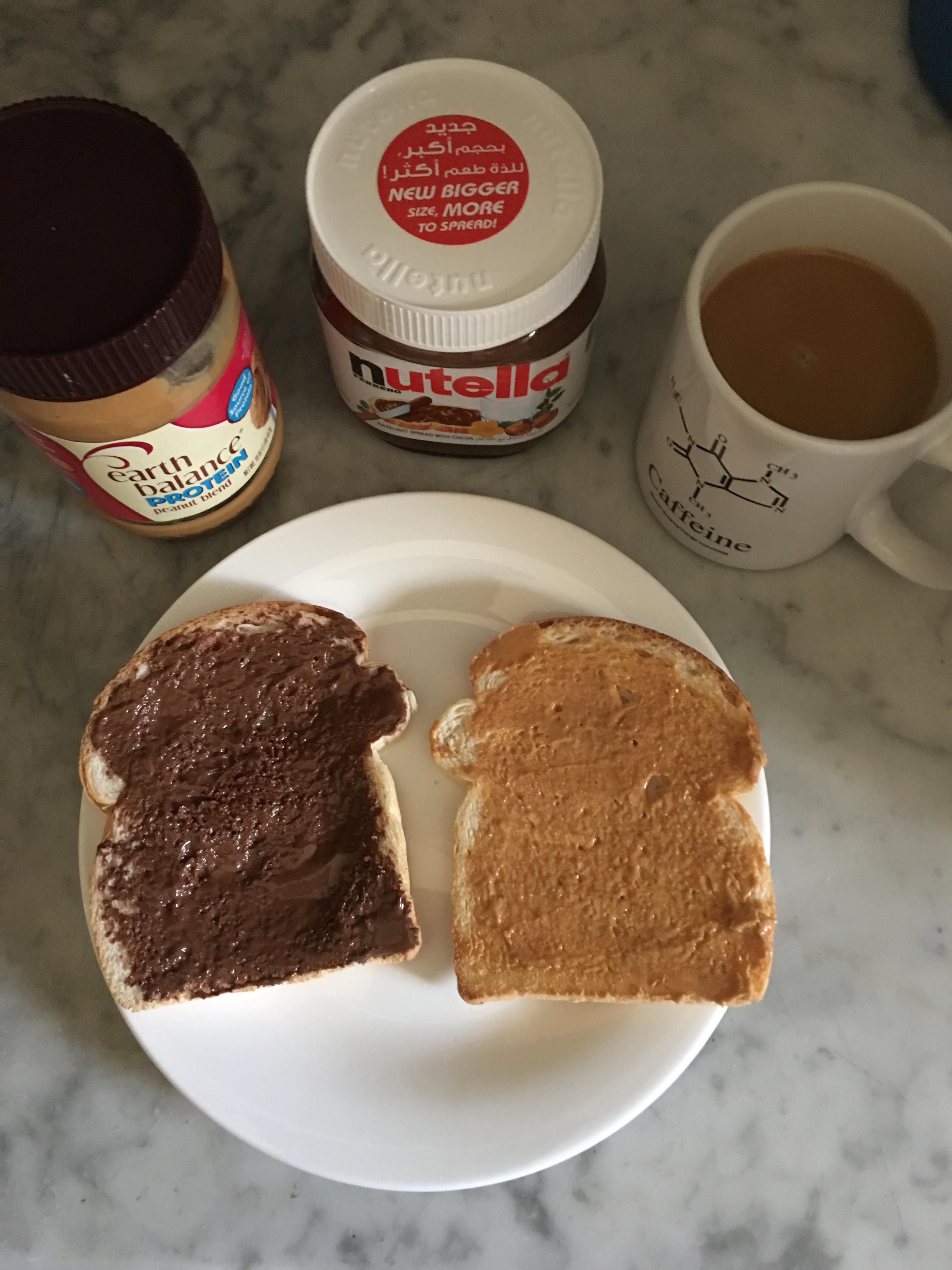 Nutella and Peanut butter for Breakfast! best breakfast ever! My favorite spreading goodies!