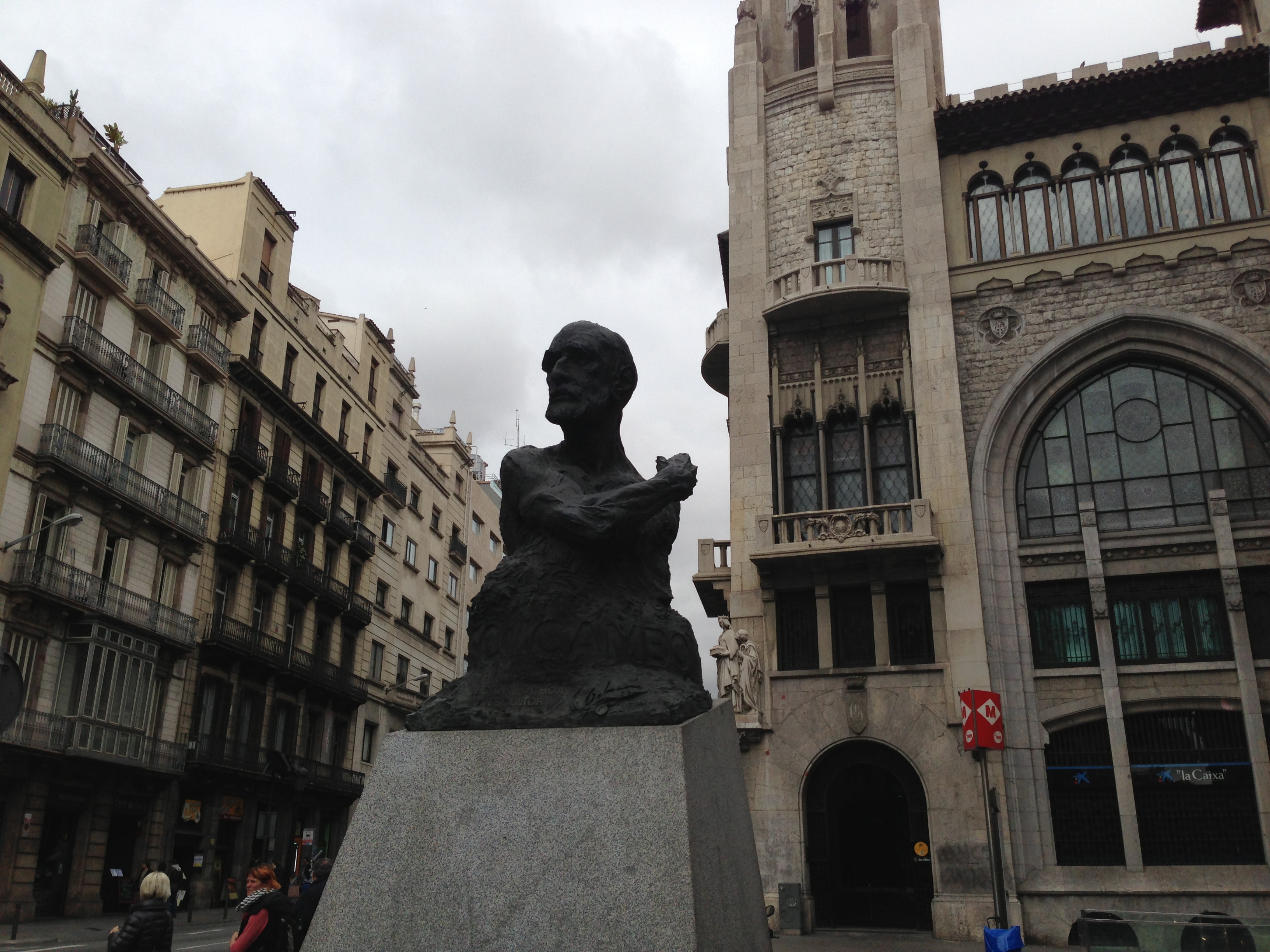 The first thing that caught my attention is the statue on a man pointing coincidentally to the street that we have to start from, which is the monument to Francesc cambo at Via Laientana.