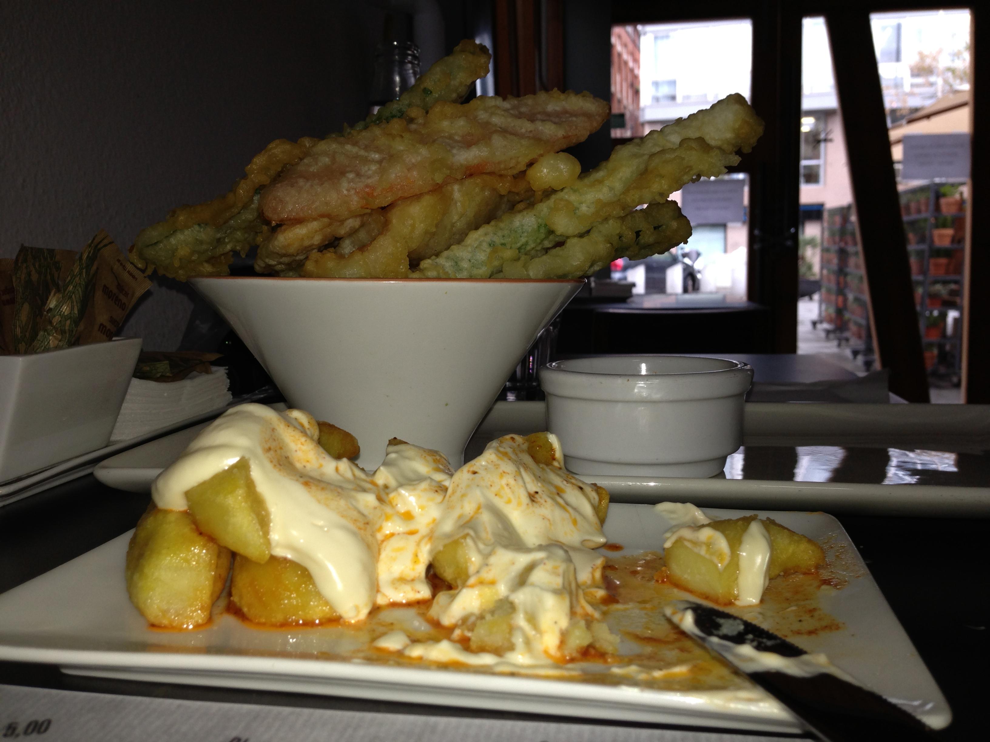 We ordered the Patatas Bravas which was a delicious (potatoes and yummy sauce). Also we took the Vegetable Tempura with Pimentos sauce, and tried the Monkfish. All of those 3 dishes was fantastic. We have enjoyed each and every bite 🙂
