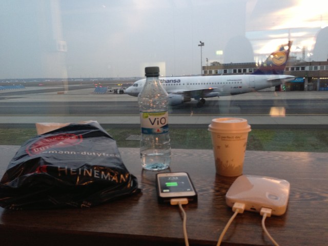 We’ve arrived early in the morning, for 2:30 min transit heading to our gate in terminal 1 in order to catch our next flight. There were enough time that we don’t need to rush. I wound’t miss all the yum yum pastries in Germany and though of having a croissant although I was not hungry, but I can’t resist their goodies. We sat next to the cafe in front of the windows enjoying the croissant & the Cappuccino, and watch the airplanes while they takeoff in front of us. We also used our backup chargers to charge our cellphones while we were sitting there. By the time we are done, it was almost boarding. The gate was too close to where we were sitting.